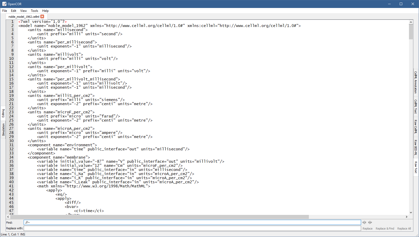 The find/replace feature can be activated by, for example, pressing Ctrl+F (and hidden by pressing ESC), as can be seen at the bottom of the view: