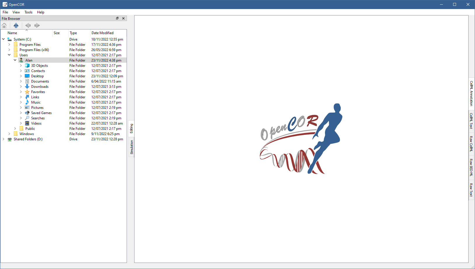 Similarly, to double click on a file results in that file being opened in OpenCOR. Its rendering depends on its type, if it is recognised, or on the view being currently selected.